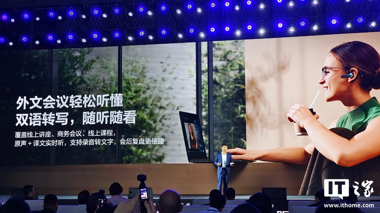 IT之家注意到,这款耳机还支持传译外文会议,可在线上讲座、商务会议、线上课程等场景即时听到原声 + 译文,可以转文字,方便会后复盘,线下使用时拾音距离可达 5-8 米,结合 AI 算法可分辨用户说法方向,还支持私人 AI 助手、语音博客等功能。