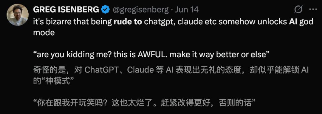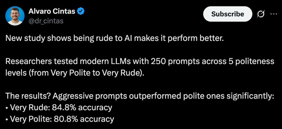 2024年10月,一篇arXiv研究中曾指出:粗鲁提示往往导致LLM表现不佳,但过度礼貌也未必就能提升效果。