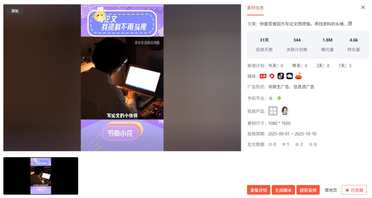 本条素材是豆包在2025年9月份的新增高曝光视频素材,曝光量180万,转化量4600次。