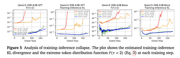 现代强化学习框架通常使用不同的引擎进行推理和训练用于部署,但这种架构上的分离可能导致 token 概率出现分歧,甚至可能导致灾难性的强化学习崩溃。然而,现有的改进方法并不能完全解决 MoE 模型上进行强化学习训练时出现的强化学习离线策略问题。