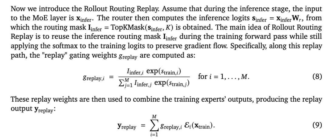 2、提出 Rollout Routing Replay,它重用训练引擎内部的推理时间路由分布,以协调训练和推理之间的路由行为;