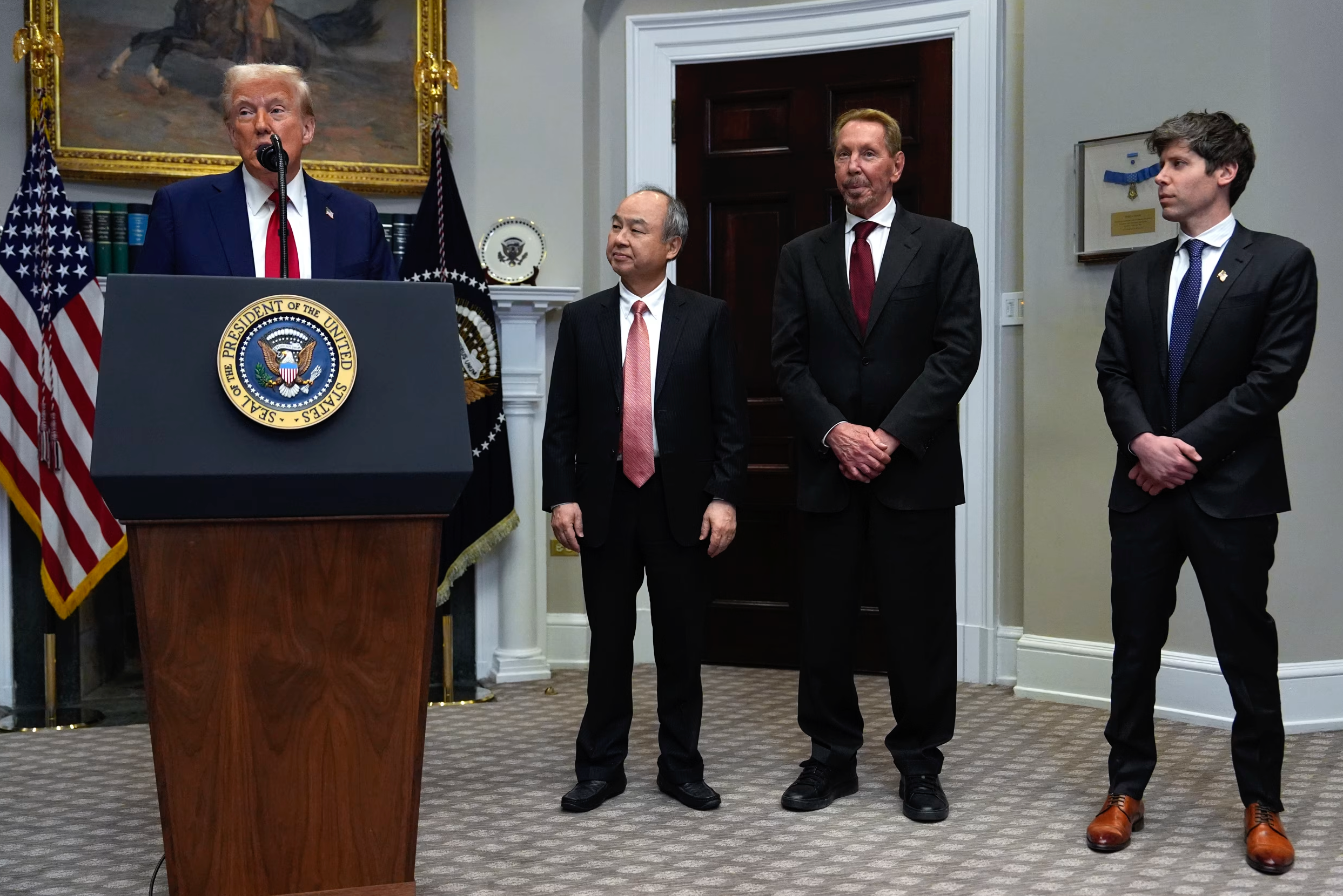 今年1月,就在黄仁勋即将结束在亚洲的庆祝春节之旅时,软银CEO孙正义(Masayoshi Son)与奥特曼一道在白宫宣布了史上最大规模的AI基础设施项目“星际之门”。