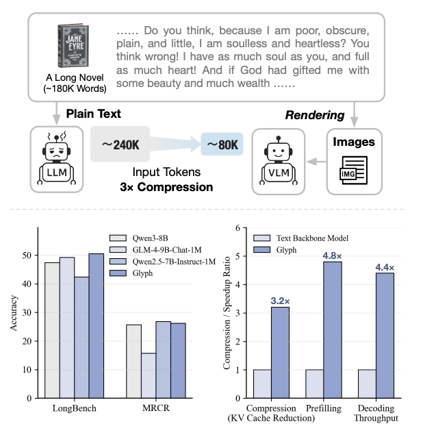 太卷了,DeepSeek-OCR刚发布不到一天,智谱就开源了自家的视觉Token方案——Glyph。