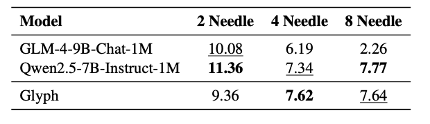 靠着这套组合拳,Glyph在高压缩的视觉上下文任务里依然能游刃有余。