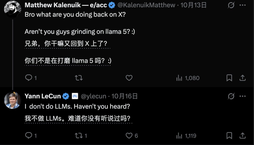 在最近与网友的互动中,LeCun还连续澄清自己和Llama项目没有过一毛钱关系。