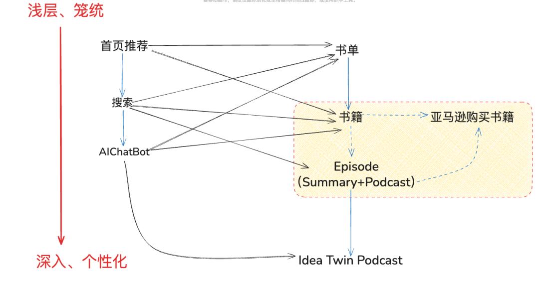 而通读李可佳的分享可以总结出,他认为,在 AI 时代,个性化内容、激发用户思考、建立快速反馈机制,建立“内容-行动-反馈-成长”的闭环是教育产品的一个迭代方向。而根据联合创始人吴俊东在播客中的分享,基于这三个核心目标,Aibrary 的迭代也分为,建立个性化推荐机制、生成引发思考的个性化内容,以及建立定制学习流程三个阶段。