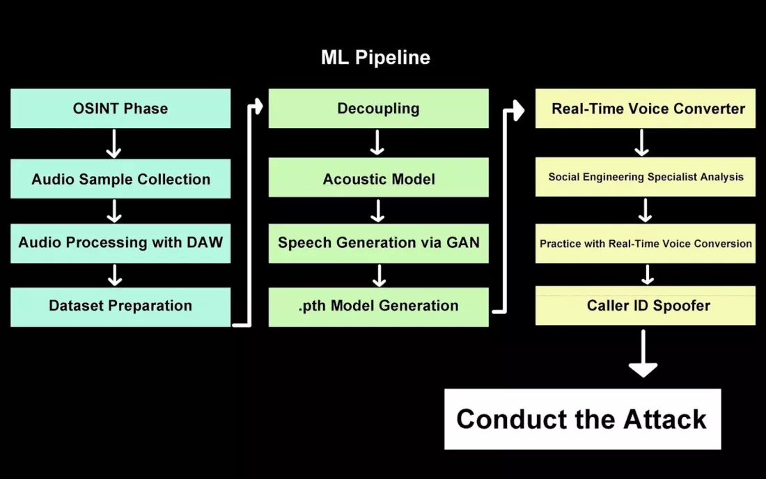 这项被称为“深度伪造语音钓鱼(deepfake vishing)”的技术,通过 AI 模型学习目标人物的声音样本,可在定制网页界面上由操作者一键启用,实现实时语音“转译”。