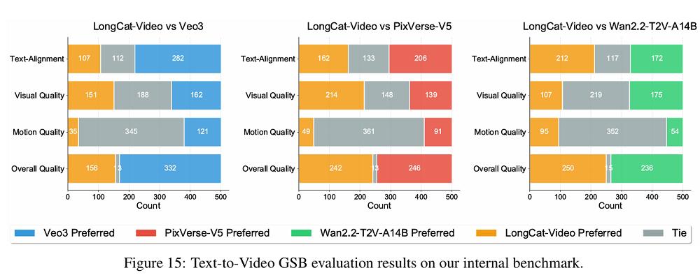 在奖励模型设计上,LongCat-Video采用了三重奖励体系,分别评估视频的视觉质量、运动质量和文本一致性。视觉质量由HPSv3模型打分,衡量画面美感与细节;运动质量通过VideoAlign模型评估,确保动作自然流畅;文本一致性则检验生成视频与输入提示语的语义契合度。