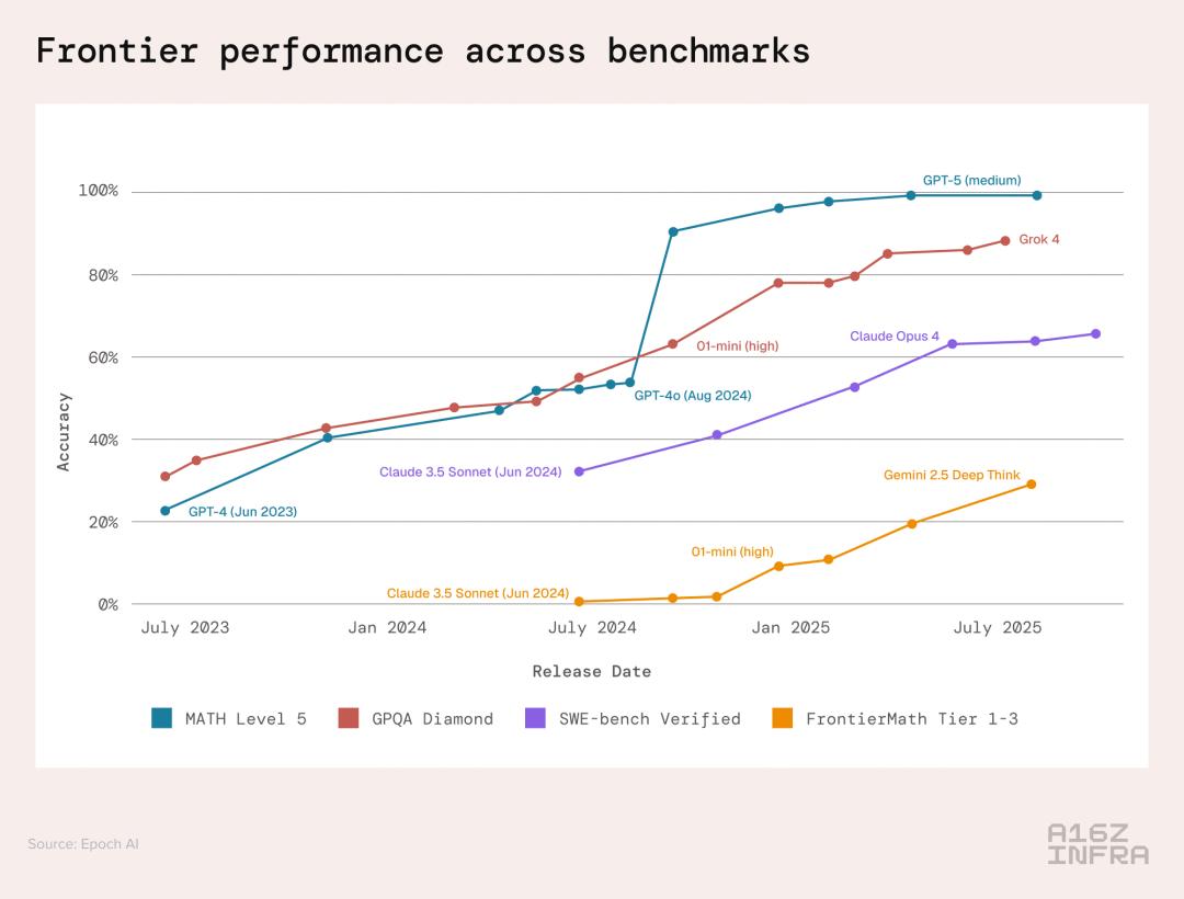 其实,大语言模型也走过类似的路径。2023到2025年,主流模型性能持续上升,之后在各种评测中逐渐趋于稳定。到了这个阶段,各家研究机构开始把重心放在具体场景和垂直领域上,而不是单纯追求更高分。同时,基于这些模型的AI产品也开始快速落地。