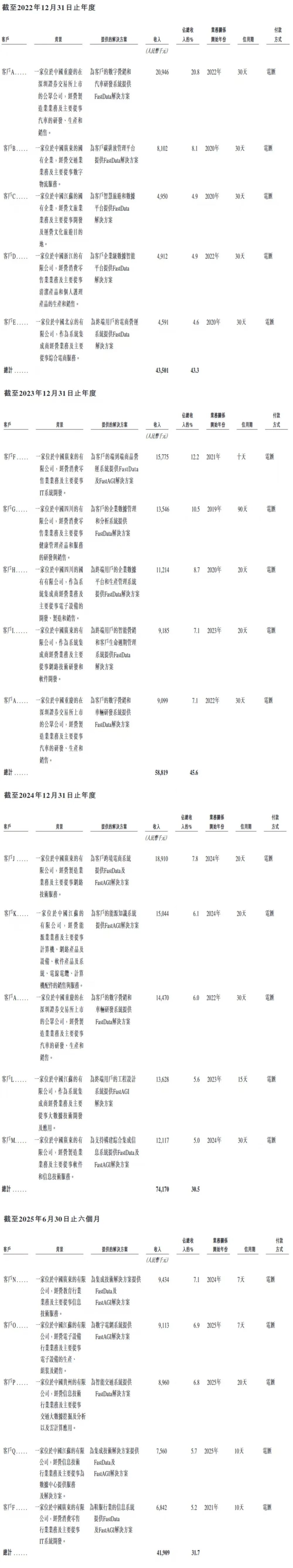滴普科技并未披露前五大客户的具体名称,不过根据招股书中披露的信息和公开资料可以推测,2022年-2024年连续3年出现在滴普科技前五大客户清单上的客户A为长安汽车,滴普科技为其数字营销和其策划研发系统提供FastData解决方案。