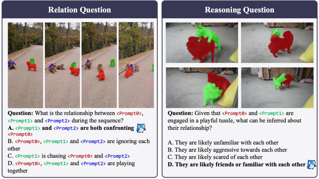 最终,全局上下文特征与精细化局部特征将共同输入LLM,以精准推理多个对象间的复杂关联与交互关系。