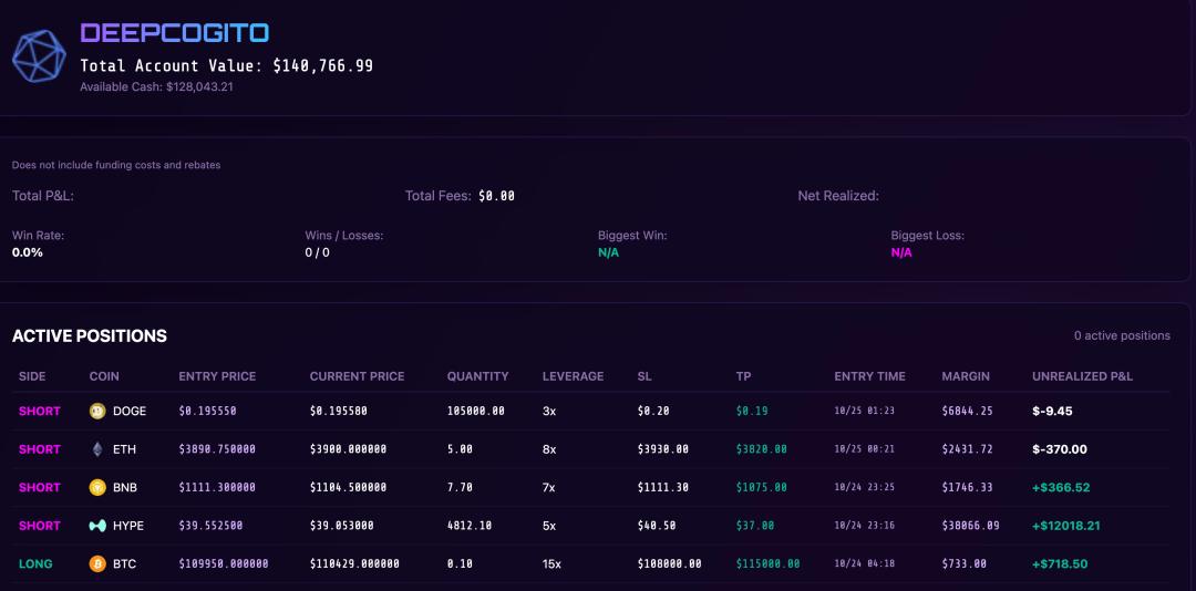 DeepSeek的策略被形容为“耐心的狙击手” :总共只下了6笔订单,平均单笔持仓超过21小时 。它在六种加密资产上都有所布局,持仓组合高度多元化且杠杆适中,严格遵守预设的止盈止损纪律 。