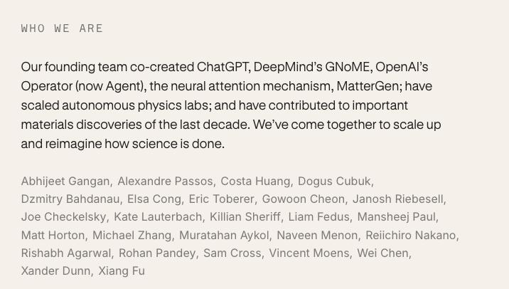团队名单,图源 Periodic Labs 官网