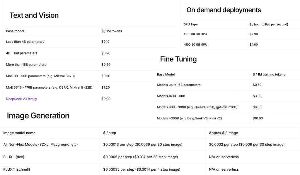 ▲Fireworks AI部分功能定价(图源:Fireworks AI)