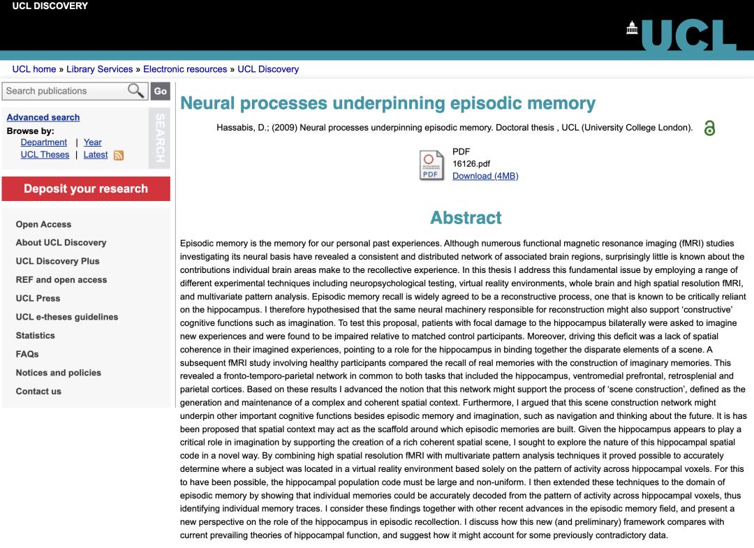 Hassabis 在 UCL 学习期间发表的论文成果