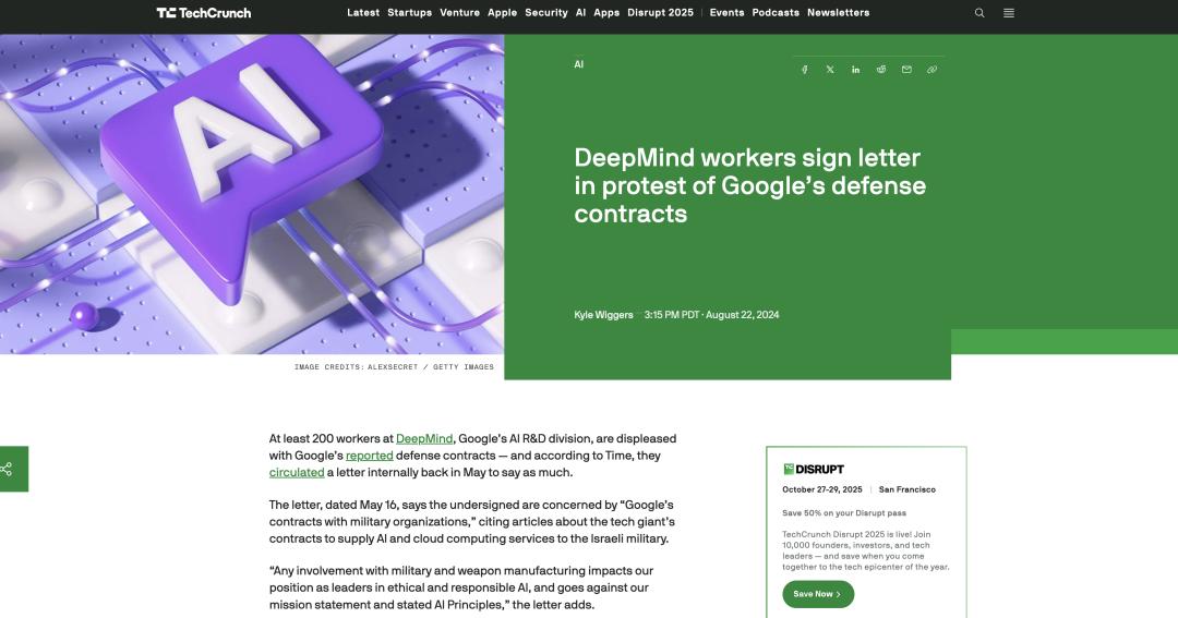 1.https://techcrunch.com/2024/08/22/deepmind-workers-sign-letter-in-protest-of-googles-defense-contracts/