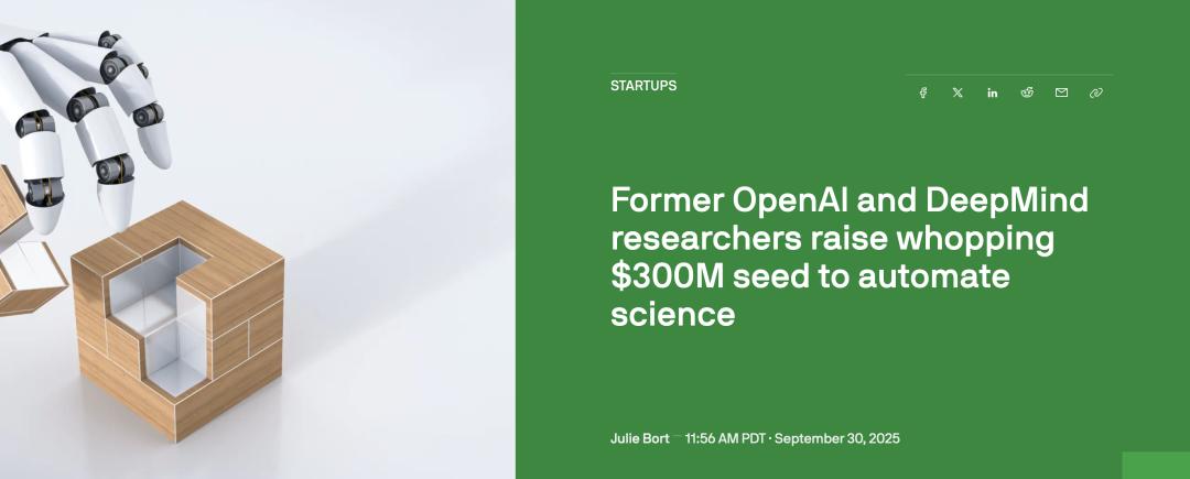 ChatGPT研究员William Fedus联合创办Periodic Labs,9月完成3亿美元融资。