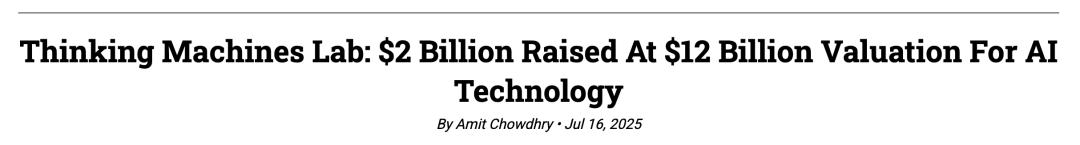 前CTO Mira Murati创立了Thinking Machines Lab,完成20亿美元种子轮融资,估值120 亿美元。