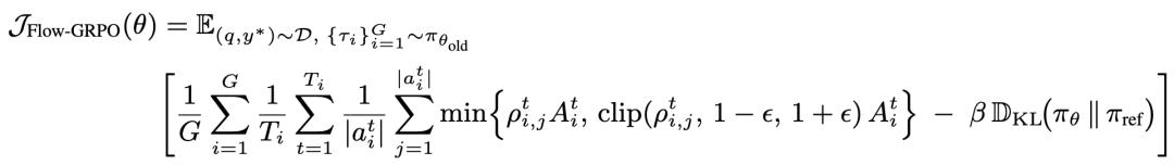 团队提出Flow-GRPO(Flow-based Group Relative Policy Optimization)算法,专门针对多轮推理场景设计。核心思想是将轨迹最终的奖励信号(成功/失败)广播到每一步动作,把复杂的多轮强化学习问题转化为一系列单轮策略更新。