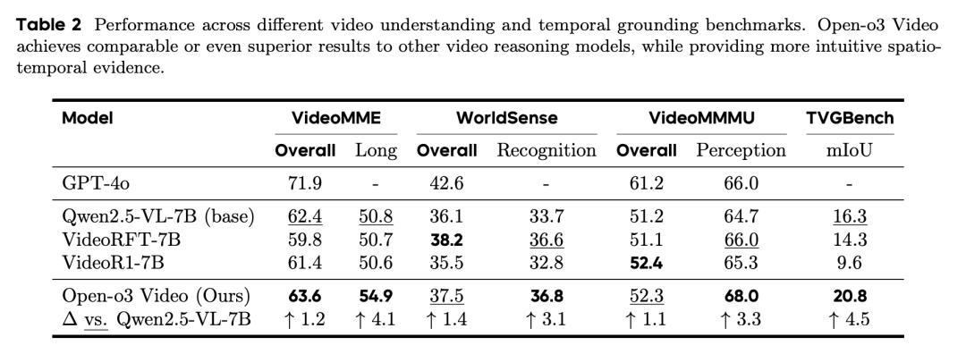 Open-o3 Video在多个视频推理与理解基准上均取得显著性能。