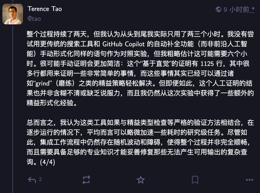 这让陶哲轩省去了大量查阅Lean库和语法的时间,等于身边多了个熟悉Lean语言的超级速记员。