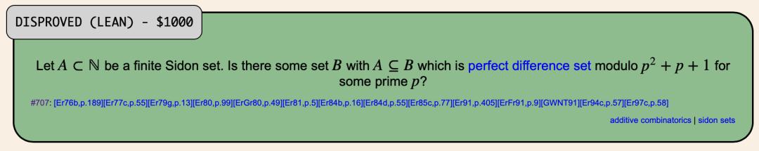 这道问题关乎组合数学中的Sidon集合与完美差集的关系——听上去高深莫测,但简单来说,Erdős猜想任何一个特殊的「Sidon数集」都能扩充成某种「完美差集」。