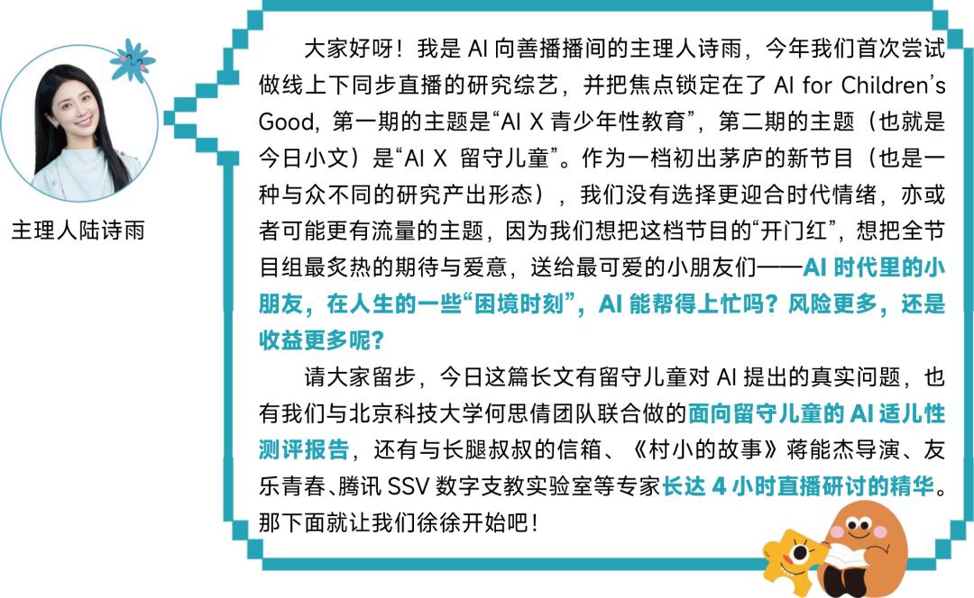 对于留守儿童与青少年而言,他们在家庭中往往缺乏一个稳定的引导者或权威,面对一个“全知全能”的AI,他们可能会本能地将其视为权威,听从AI给出的“最优解”。让AI把“方向盘”交还给孩子,从未像此刻这般紧迫。