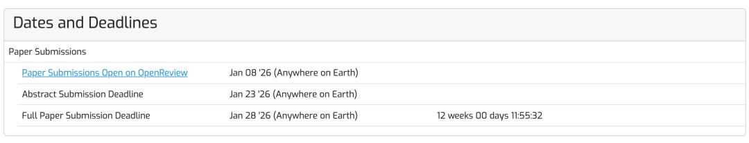 摘要提交截止日期:2026年1月23日AoE(2026年1月24日,UTC-0中午12点)。