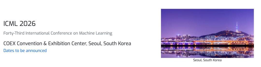 作为第43届国际机器学习大会,ICML 2026将于2026年7月7日-12日在韩国首尔举办。