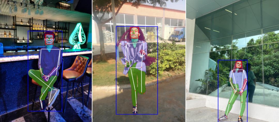 FHIBE 的每张图像均附有自述姿势、互动、外观特征、年龄类别标注以及人脸、人物编辑框的像素级标注,包括 33 个关键点与 28 类分割标签。每条标注均附有匿名化编号以及标注者主动披露的人口统计信息,以保证可追溯性与透明度。据论文介绍,这种像素级标注与属性标签相结合的方式,使得FHIBE成为“当前最全面标注的公平性数据集”。