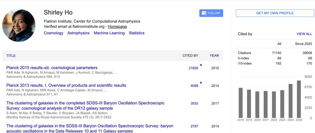Shirley Ho是美国著名的天体物理学家与机器学习专家,现任西蒙斯基金会(Simons Foundation)研究组组长,同时是纽约大学的教授,并在普林斯顿大学担任访问职务。