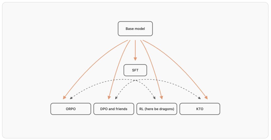 而在主要步骤阶段,文章解答了为何几乎所有的后训练流程都是以监督微调为起点,原因很简单: