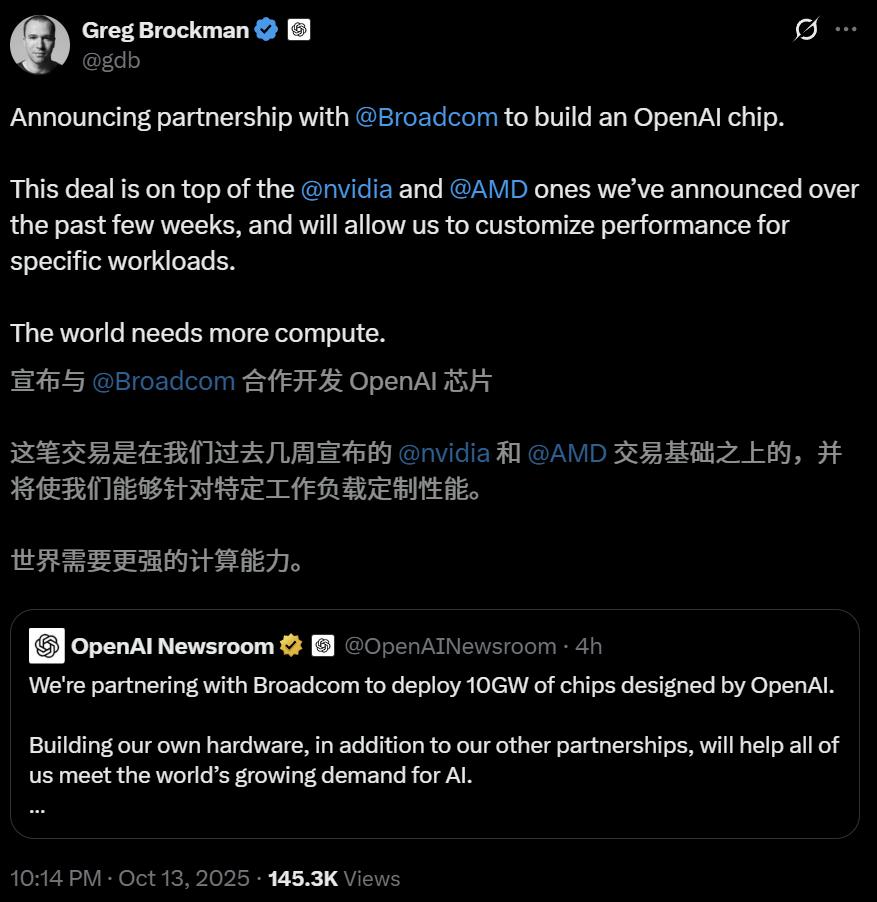 在外部,OpenAI正编织一个巨大万亿算力关系网,英伟达、AMD、甲骨文等重磅玩家相互绑定。