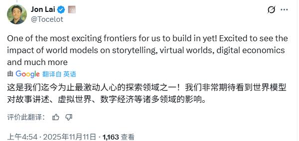 非常期待看到世界模型如何改变我们讲故事、构建虚拟世界乃至发展数字经济的方式。