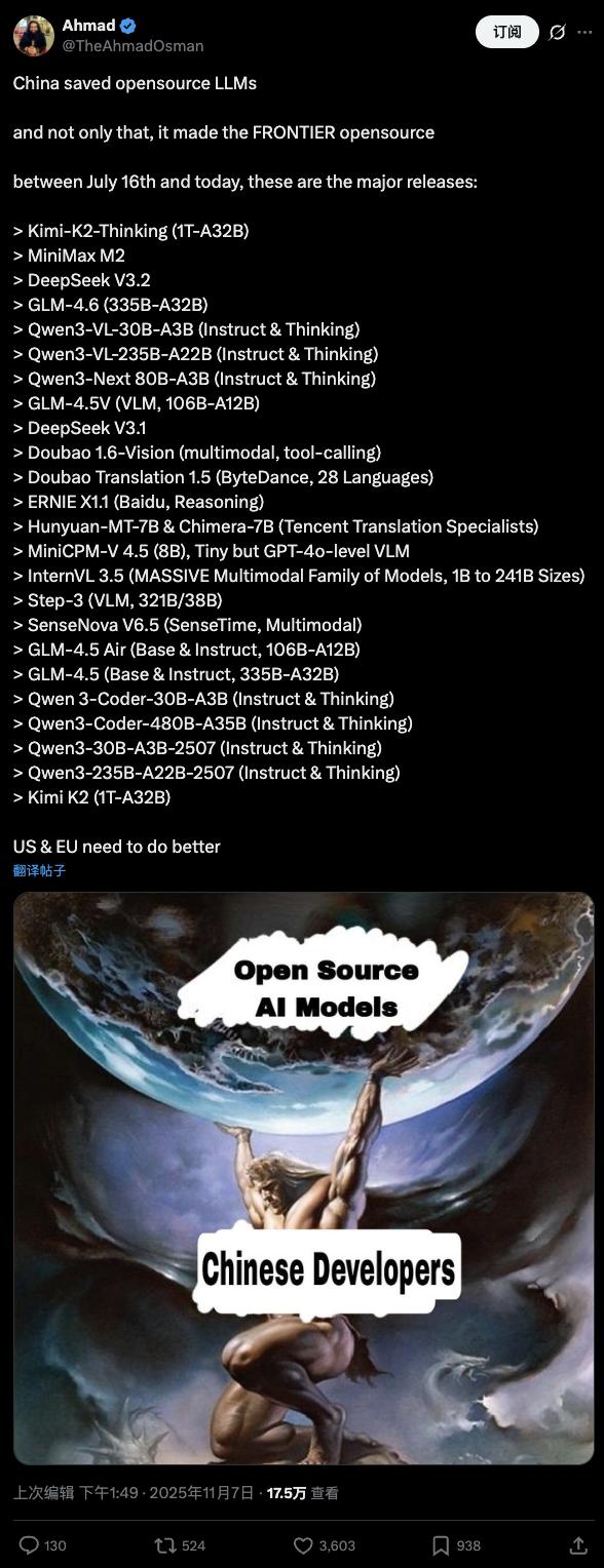 这些强大的国产开源模型甚至得到了国外AI圈的盛赞:「是中国拯救了开源模型!」(China saved open-source LLMs)