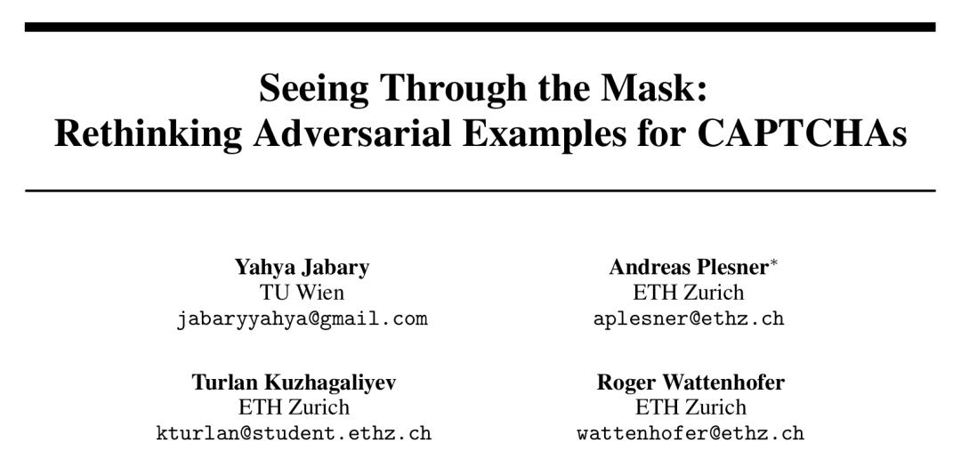 - 论文标题:Seeing Through the Mask: Rethinking Adversarial Examples for CAPTCHAs
