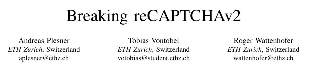 瑞士苏黎世联邦理工学院(ETH Zurich)的研究人员提交了一篇论文,题为「Breaking reCAPTCHA v2」(攻破 reCAPTCHA v2)。他们使用先进的 YOLOv8 物体检测模型,破解 v2 图像挑战的准确率达到了100%。
