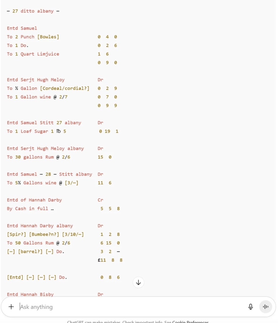 为验证模型性能,汉弗莱斯上传了一组18世纪的手写账簿与信件。这些资料常常充满错别字、笔迹潦草、格式不一。测试流程极其繁琐——他必须反复刷新界面、等待系统出现A/B比较机会,有时需尝试三十多次。