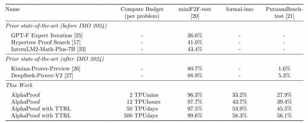 图|AlphaProof 在多个形式化数学基准测试的表现