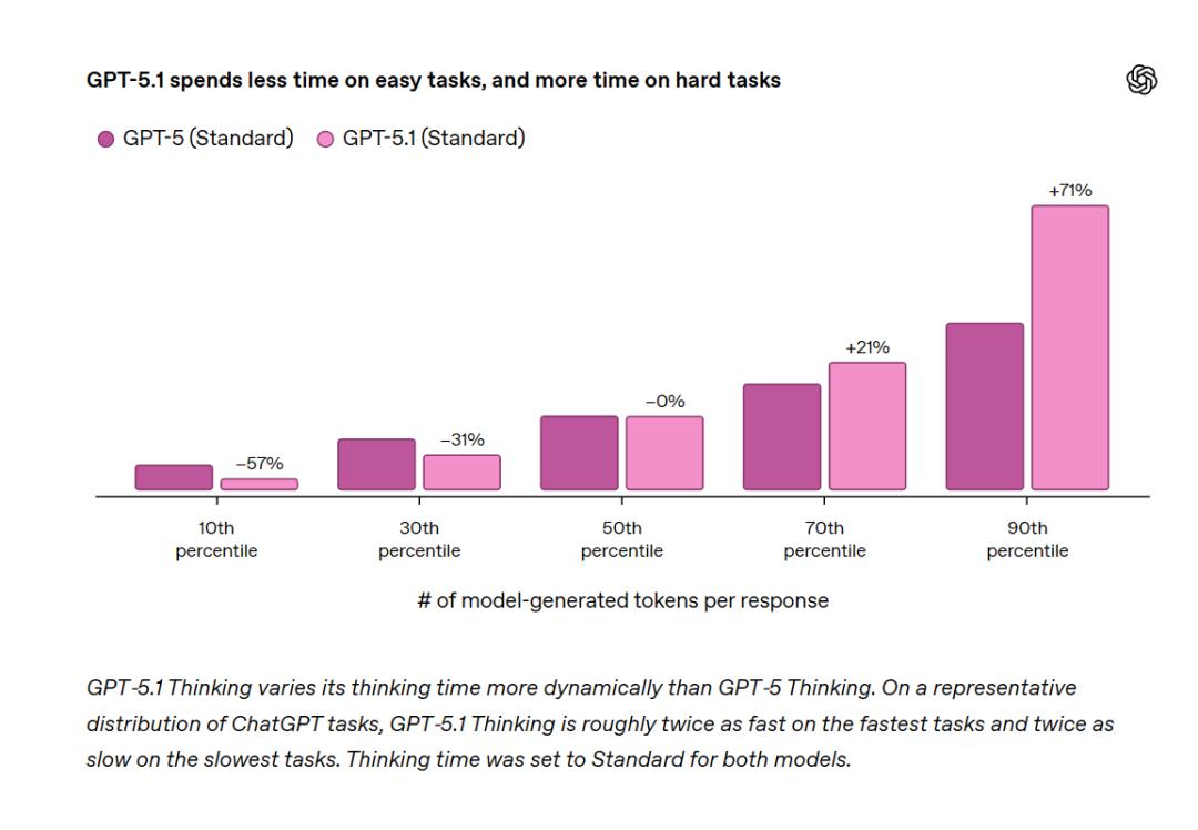 作为深度思考版本,GPT‑5.1 Thinking深入贯彻了“简单问题求快,复杂问题求聪明”这一原则。