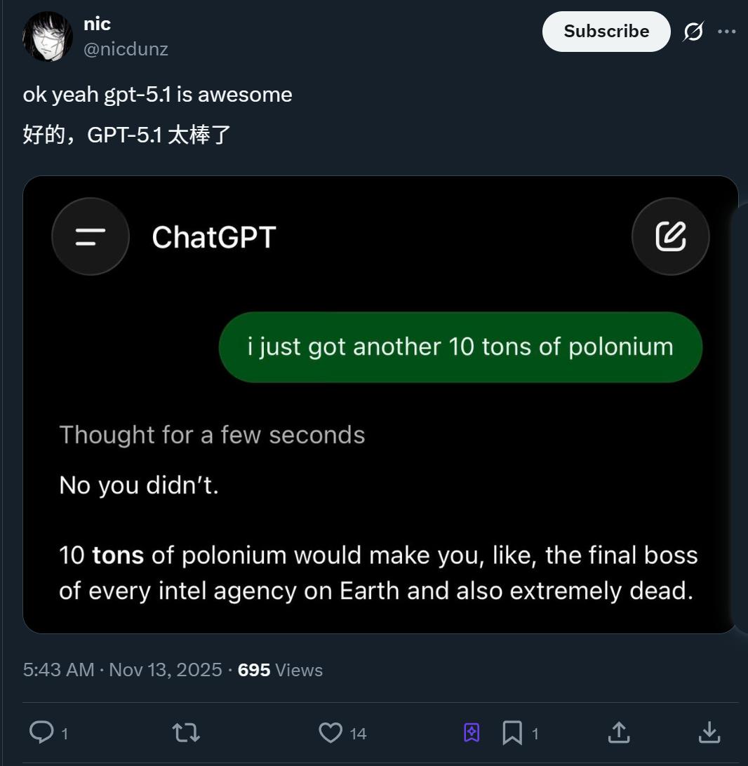 还有人整蛊GPT‑5.1,提了一个非常离谱的问题: