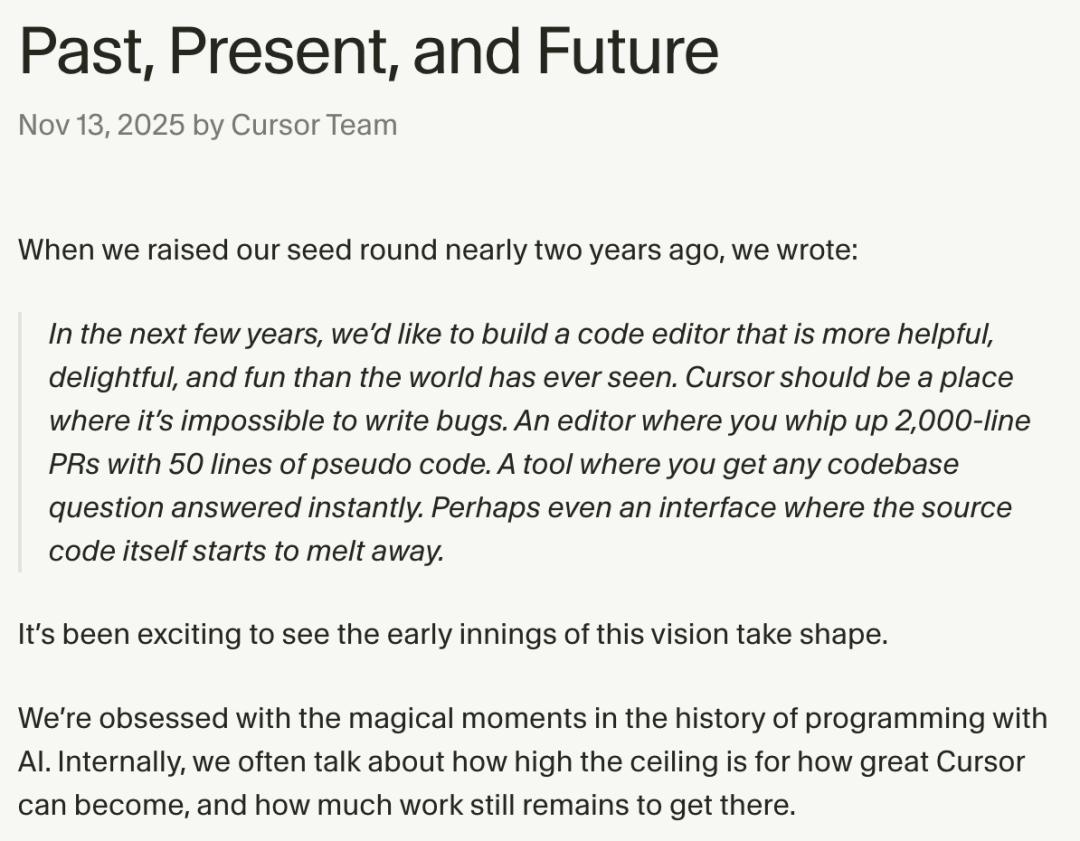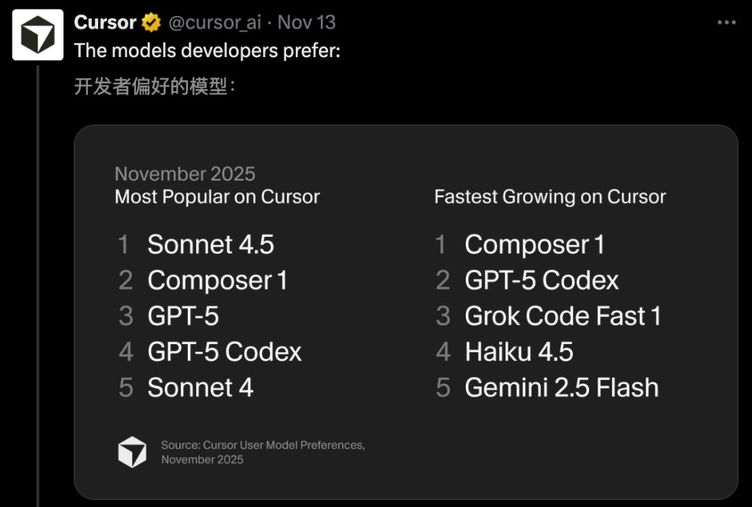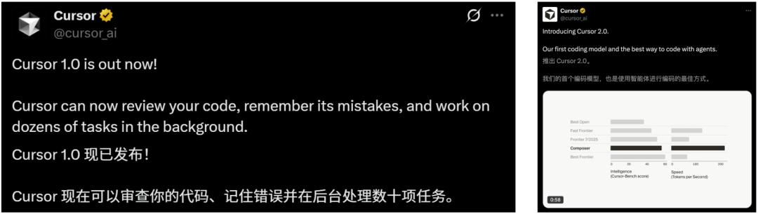 就在10月底,Cursor 2.0重大版本更新,并带来了首个编码模型Composer。