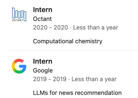 随后,Truell又在药物发现公司Octant实习,从事计算化学相关工作,并在谷歌实习期间,参与了新闻推荐模型的训练。