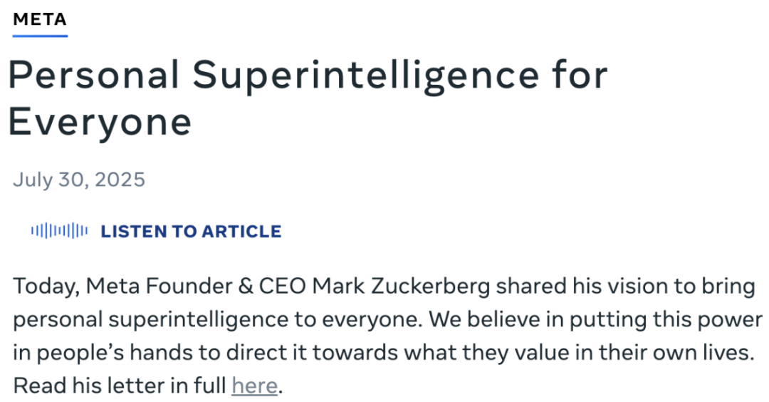 在7月,扎克伯格甚至宣称「超级智能已近在眼前」。
