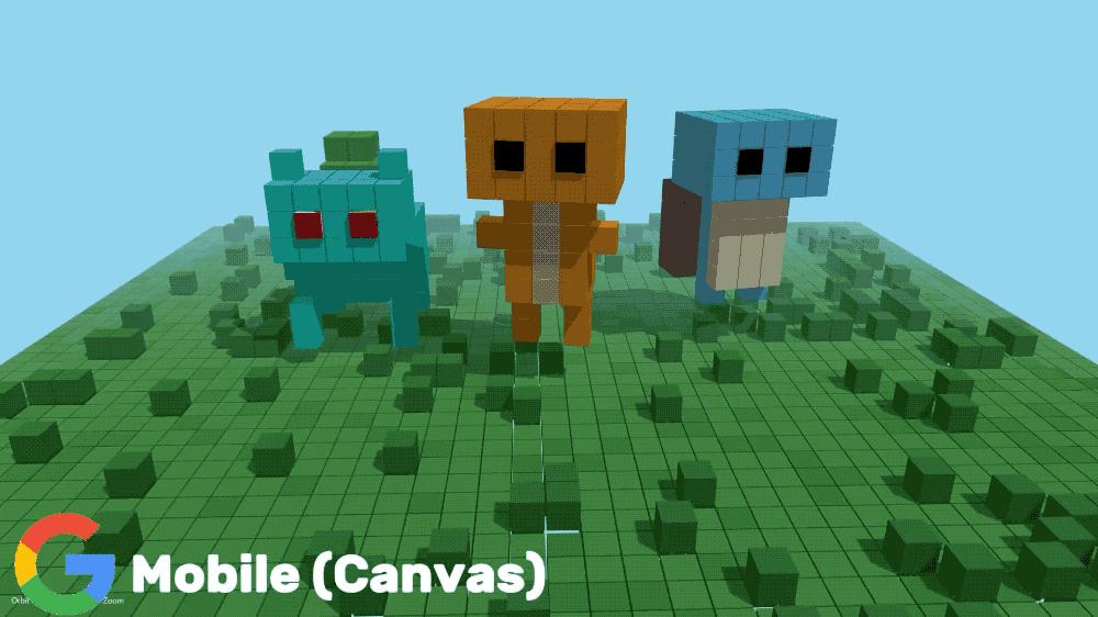 最直观的例子是这个 3D 宝可梦的动图,在 Web 端生成的 3D 动图背景简单,宝可梦的形象也很抽象;手机端的色彩、背景都做的更好。