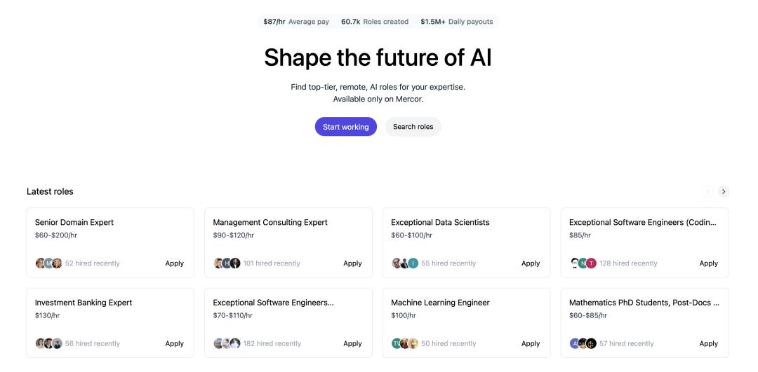 200 美元是最高时薪,Mercor 的平均时薪是 87 美元|图源:Mercor