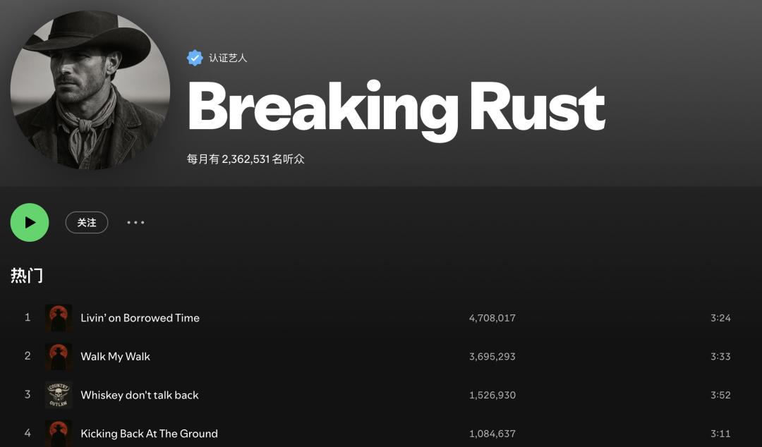 这首歌名叫《Walk My Walk》,来自一个名为Breaking Rust的「虚拟乐队」。