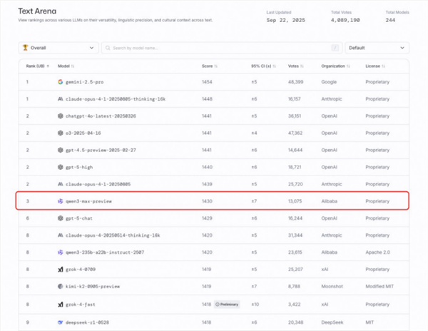 在模型竞技场,Qwen3的性能位列全球第三,排前面的全是闭源中的高手。