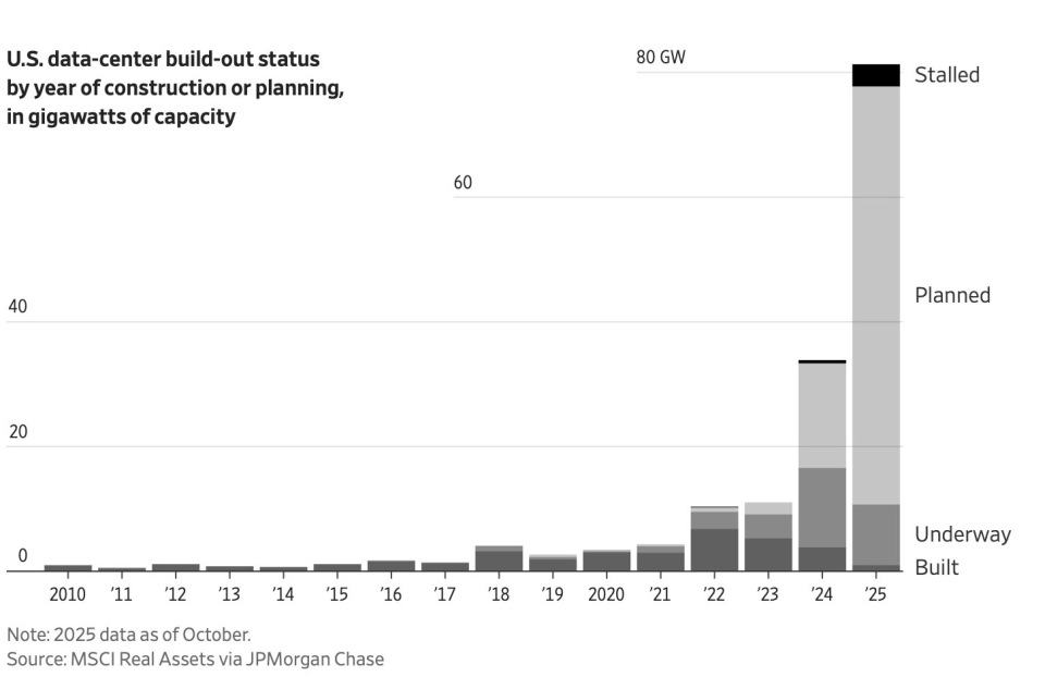 然而,现实世界中存在难以跨越的物理限制。无论资本如何涌入,关键部件的制造周期、建设工期与供应链能力均无法被无限压缩。多位业内人士透露,一些数据中心项目已经出现延期。摩根大通董事总经理史蒂夫·图萨(Steve Tusa)表示,大量项目仍处于规划阶段,开发商正在推动土地获取、审批流程以及电力接入准备,但能否在具体地点获得足够的电力、接入高带宽光纤,以及能否吸引到稳定的企业客户,都是不容忽视的挑战。