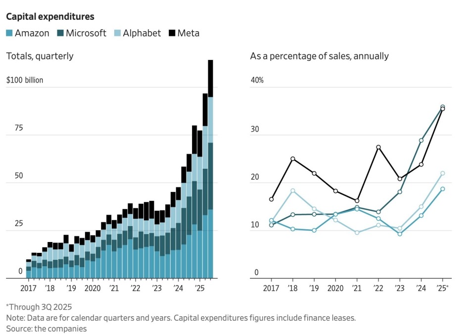 尽管风险上升,科技巨头仍在持续提升对AI基础设施的投入规模。这一趋势使得资本开支在企业营收中的占比不断扩大,部分企业已将相当比例的资源投入到大规模计算平台上。